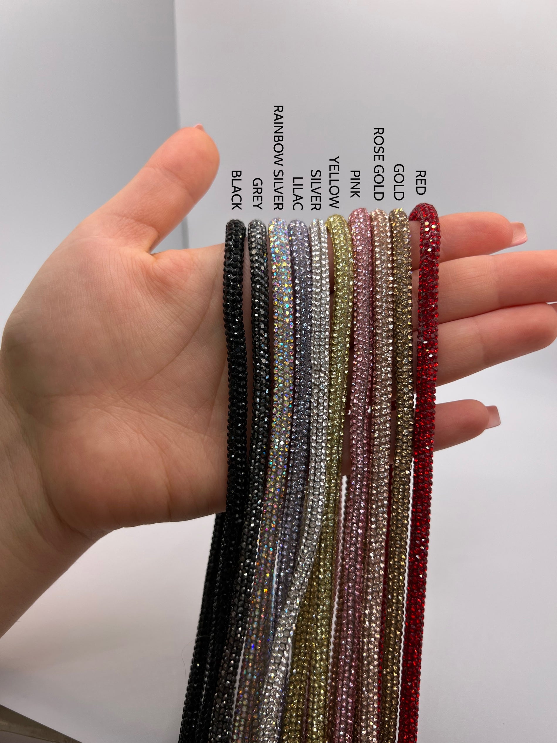 Our wristlet are made out of small Swarovski® diamond stones and with a vegan adhesive to glue them together.